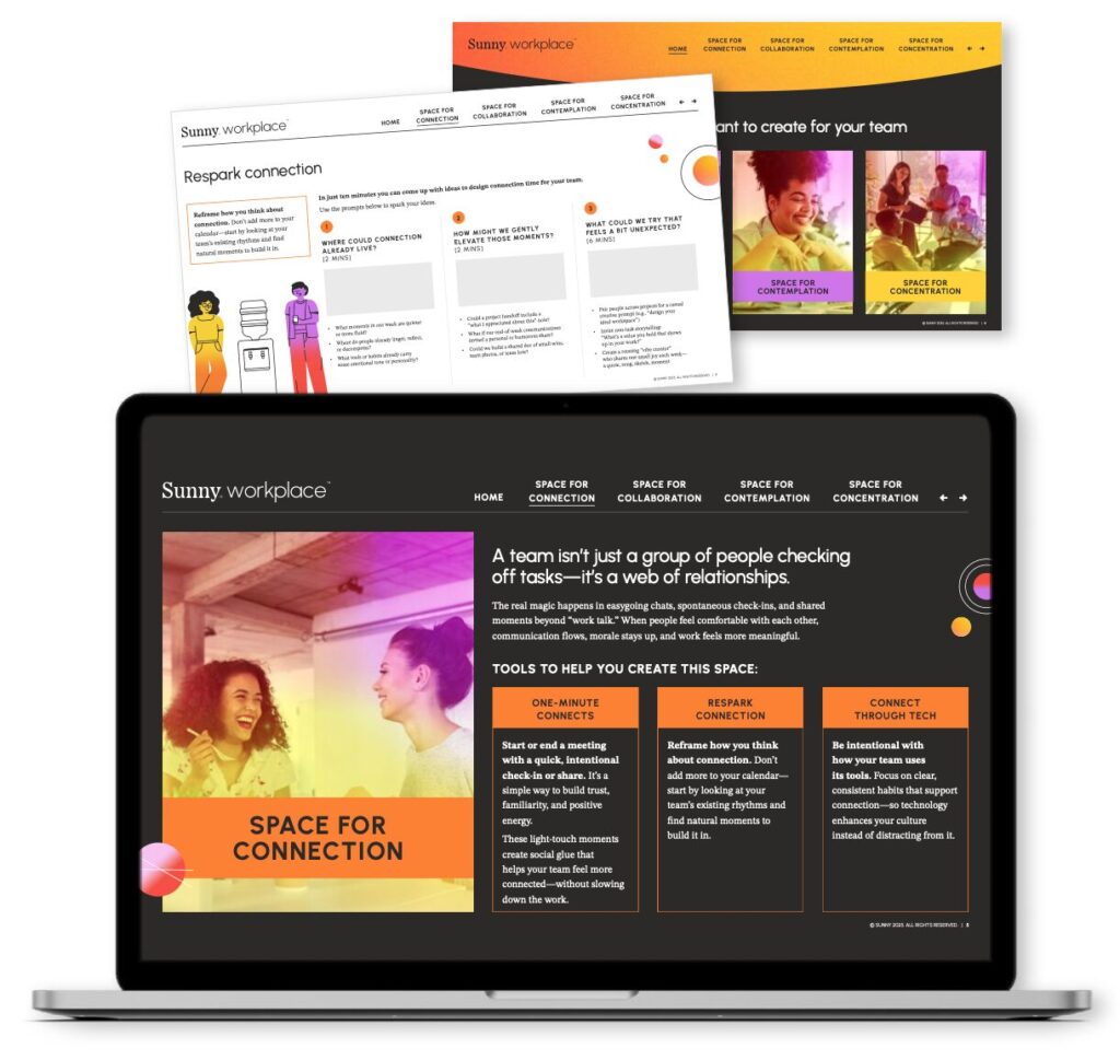 Sunny Workplace™ helps teams connect and stay energized—reducing burnout, strengthening trust, and unlocking their best work. When people thrive, culture and performance follow.